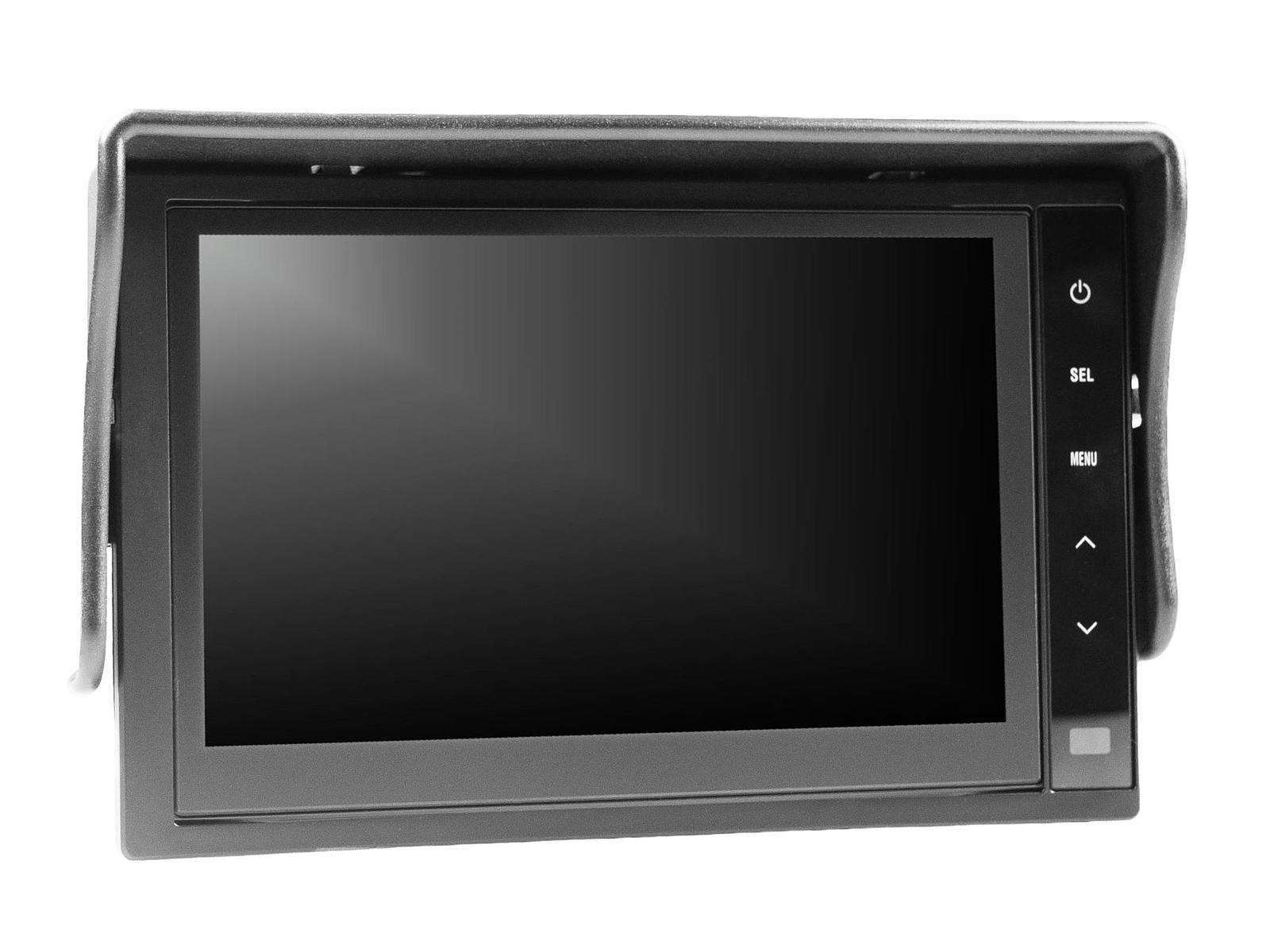 - 7" (17,8 cm) 16:9 digital LCD-skærm med 4 kameraindgange og 1 A/V-indgang (mono)