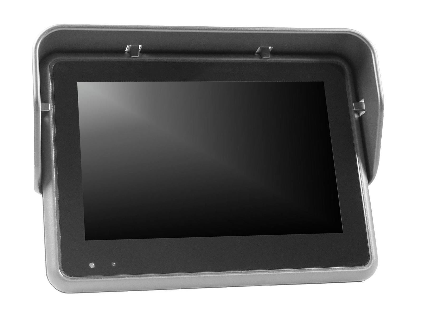 - 7" (17,8 cm) 16:9 digital LCD-skærm med 4 kameraindgange og 1 A/V-indgang (mono)