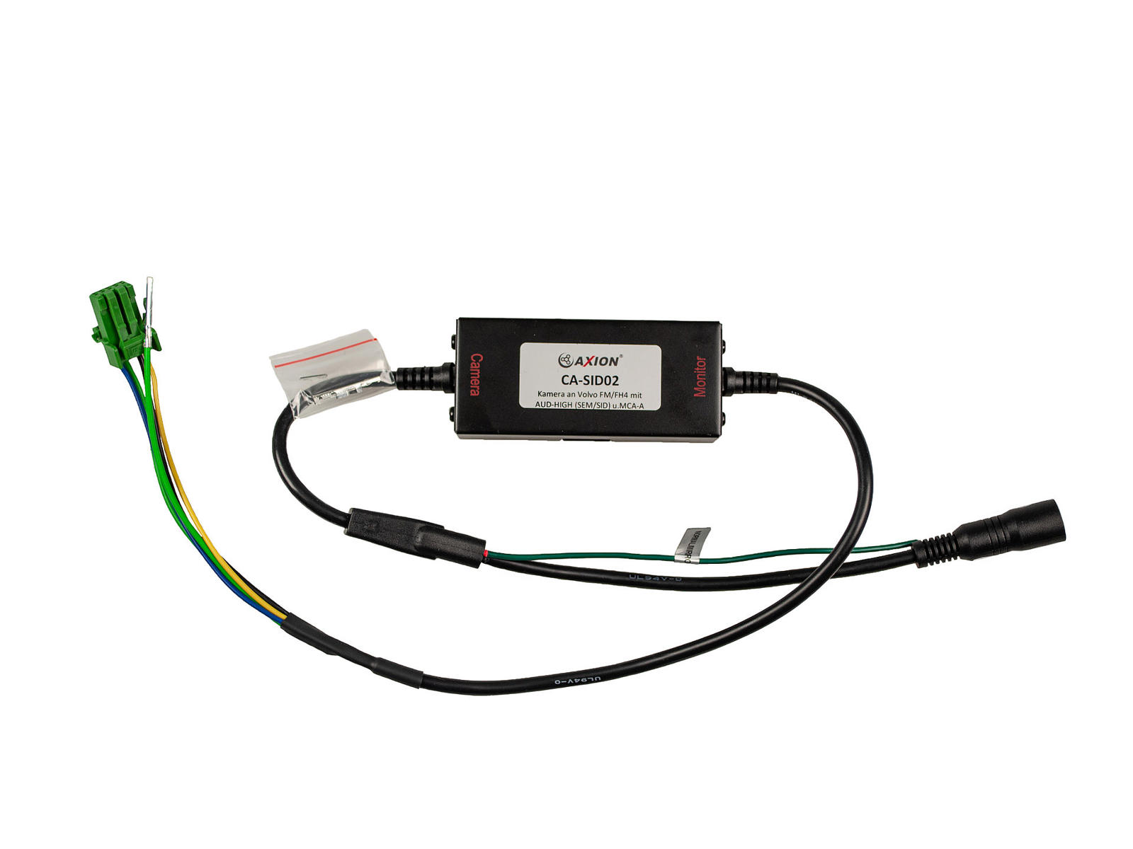 Adapterkabel til tilslutning af et AXION-kamera til Volvo Trucks i FH-serien med 7 tommer SID-skærm med A169 (video SW).Velegnet til 12V og 24V brug.
