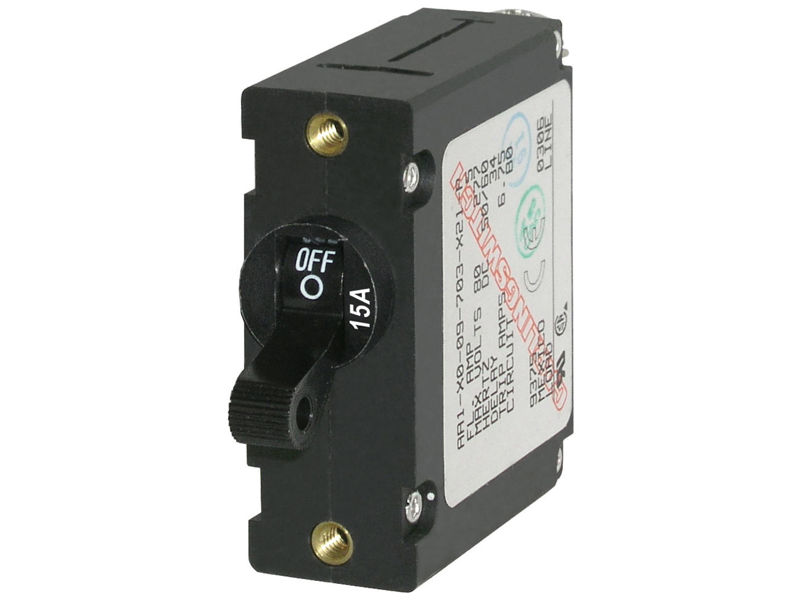 Denne A-Series Black Toggle Circuit Breaker er en branchestandard sikring designet til Blue Sea Systems’ elektriske paneler. Med en robust konstruktion og integreret beskyttelse er den ideel til maritime og industrielle miljøer.