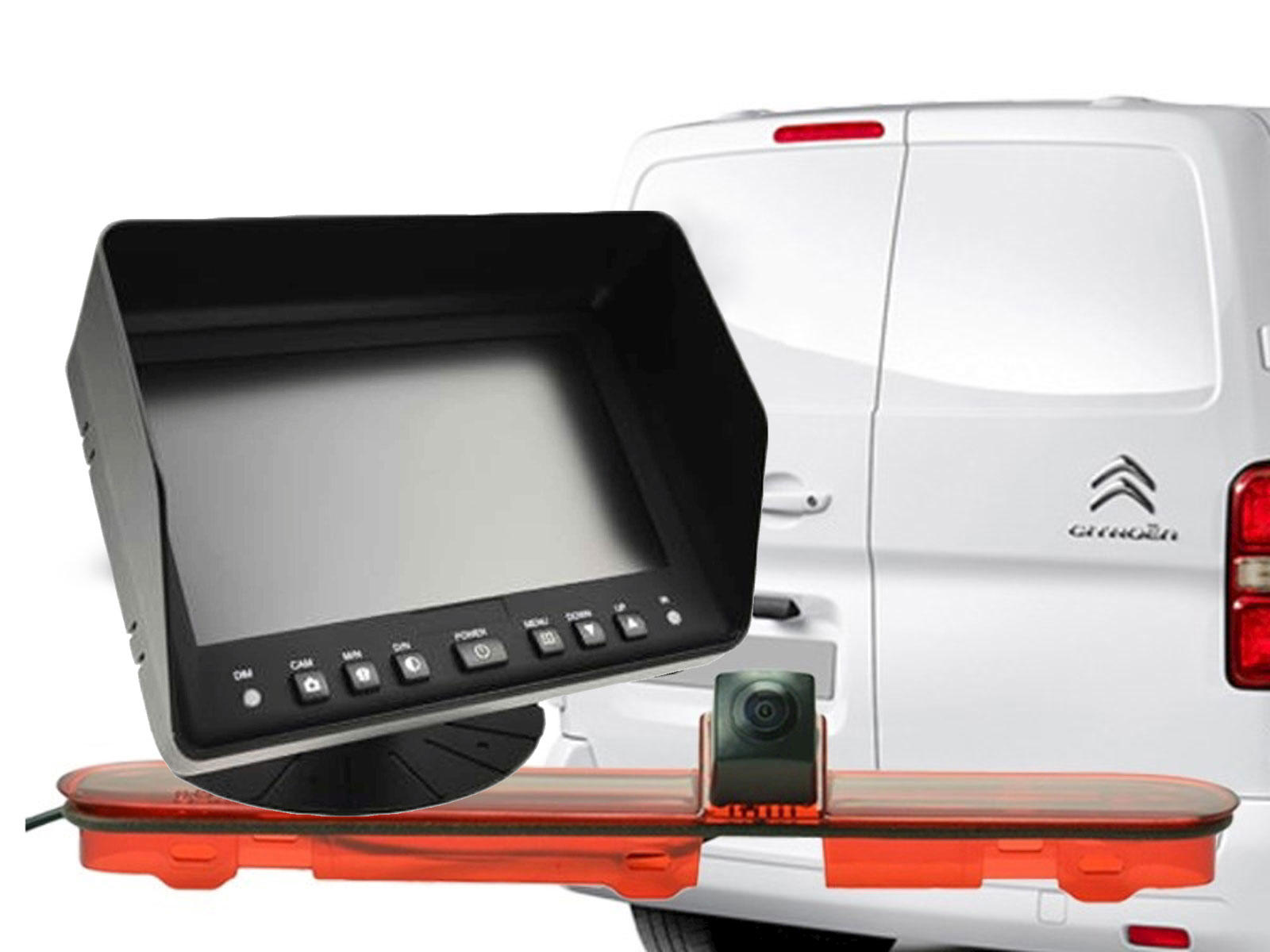 7" farvemonitor 16:9 med indbygget styring af 1 kamera. Nem plug'n play montering, PAL/NTSC (auto), mirror/normal, indbyggede højttalere. DC 12/24V- INKL. 1 stk. vandtæt Stoplygte kamera
