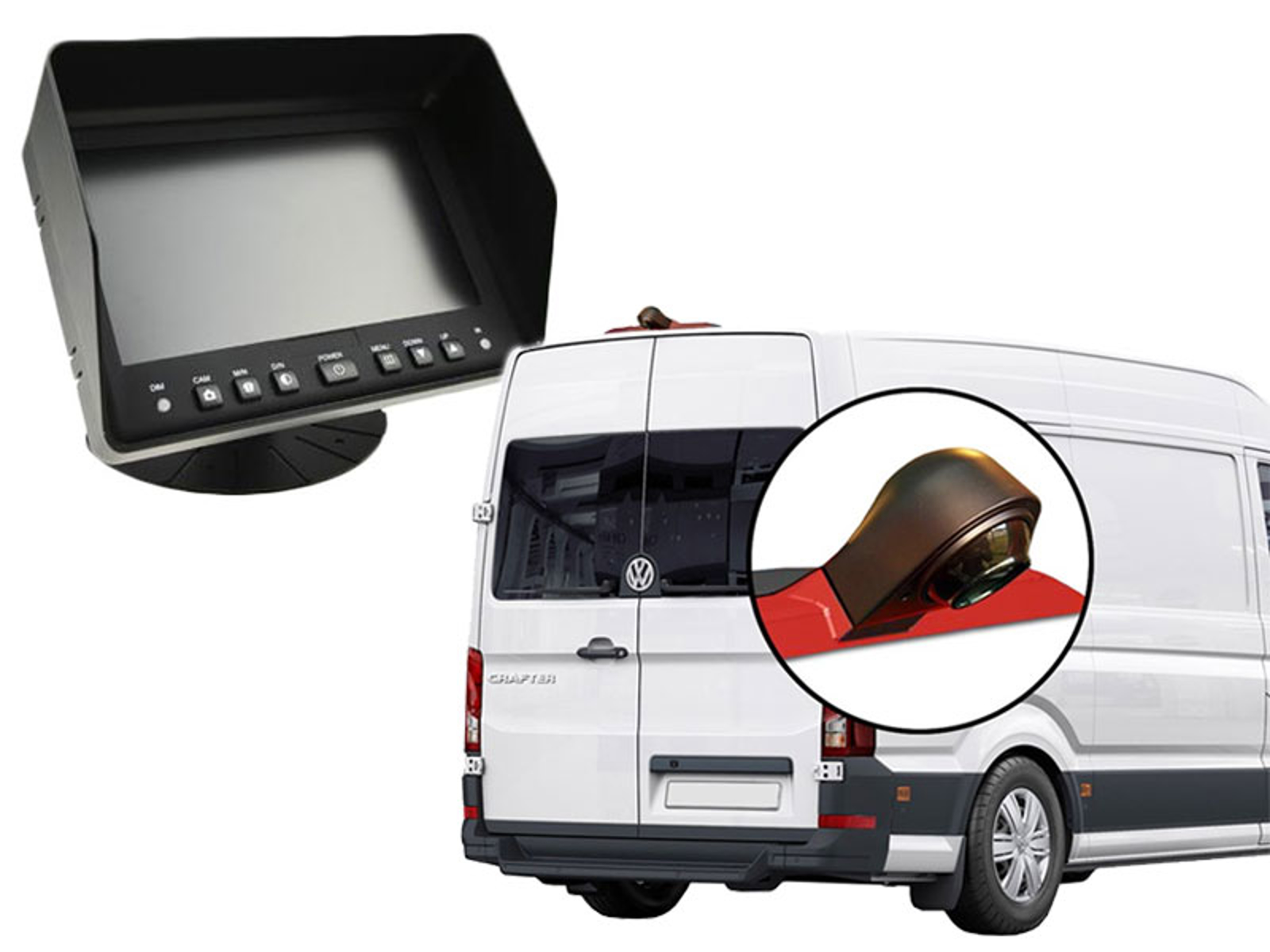 Påbyg dette diskrete kamera på den øverste originale 3. bremselygte på VW Crafter / MAN TGE 2017- og dermed tilføje et bakkamera i originalt look!