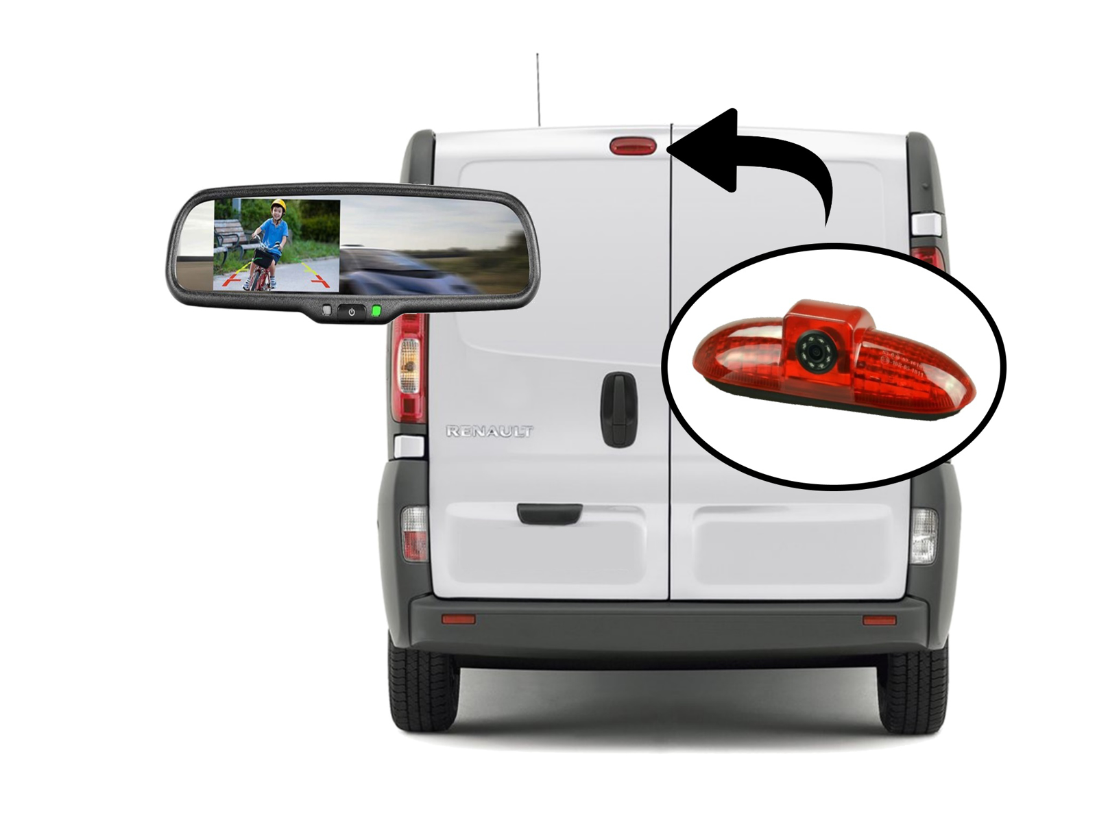 Bakkamera Kasse-Kit bakspejlmon.+stoplygtek. Renualt Traffic, Opel Vivaro 2001-2014