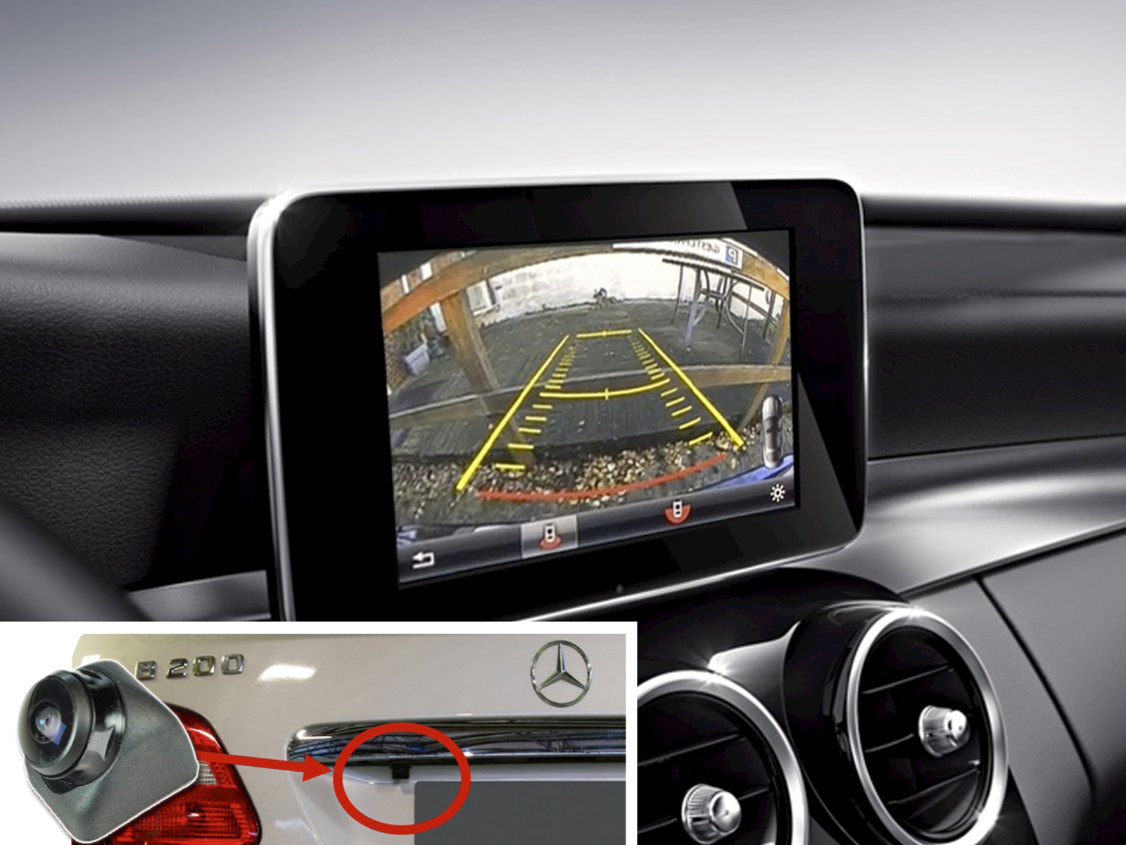 Integreret mini-bakkamera i knivskarp kvalitet og farver på den originale Mercedes skærm