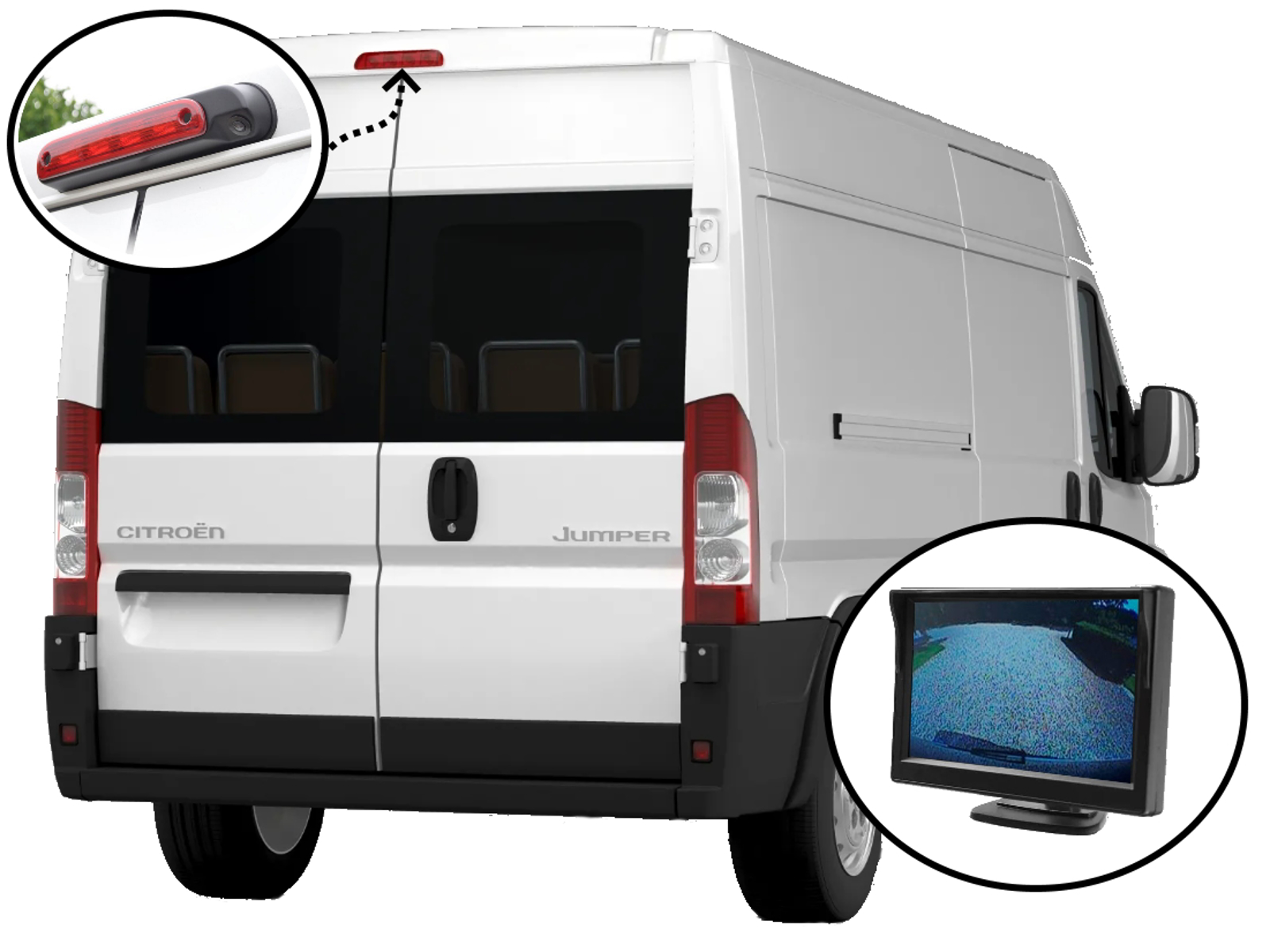 Bakkamera til udbygning af den originale 3. bremselygte på Fiat Ducato/Peugeot Boxer/Citroen Jumper. - benytter det originale bremselys og passer i de samme huller.