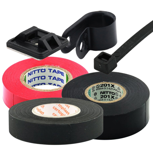 Vi har også et bredt udvalg af stoftape, isolerbånd, kabelbindere