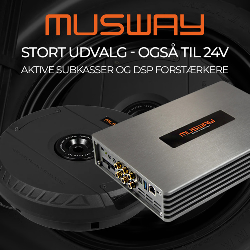 MUSWAY er kendt for høj lydkvalitet, kompakte designs og fleksible installationsmuligheder, der gør det nemt at levere professionelle resultater i alle typer køretøjer.