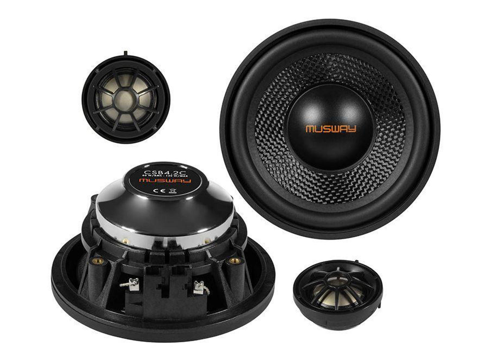 10 cm (4") 2-way component system for BMW E / F / G models / 60 watts / RMS, 120 watts / MAX / Impedance 4 ohms / Frequency range 75 - 22000 Hz / 10 cm midrange, fiberglass cone / Dual neodymium magnet / 25 mm titanium tweeter / Installation depth 43 mm / Installation opening 91 mm / Plug + Play connections