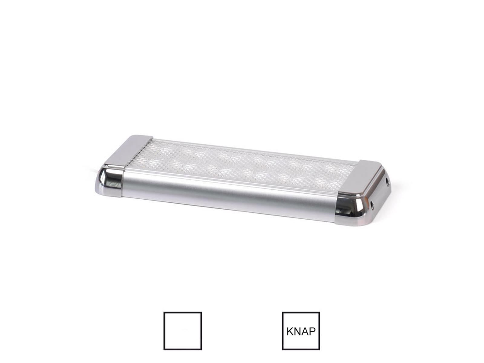 Den nye LED-armatur serie fås i 12, 24 og 36 watt, giver masser af lys og har en rigtig fin lysspredning. De forkromede endestykker skjuler monteringen og afbryderen der sidder for enden.