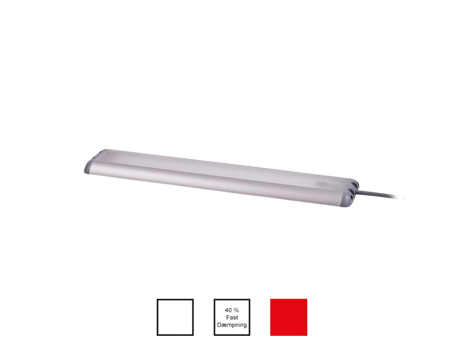 To farver lys; hvid og rød og det hvide lys har to lysstyrker; 40% eller 100%.