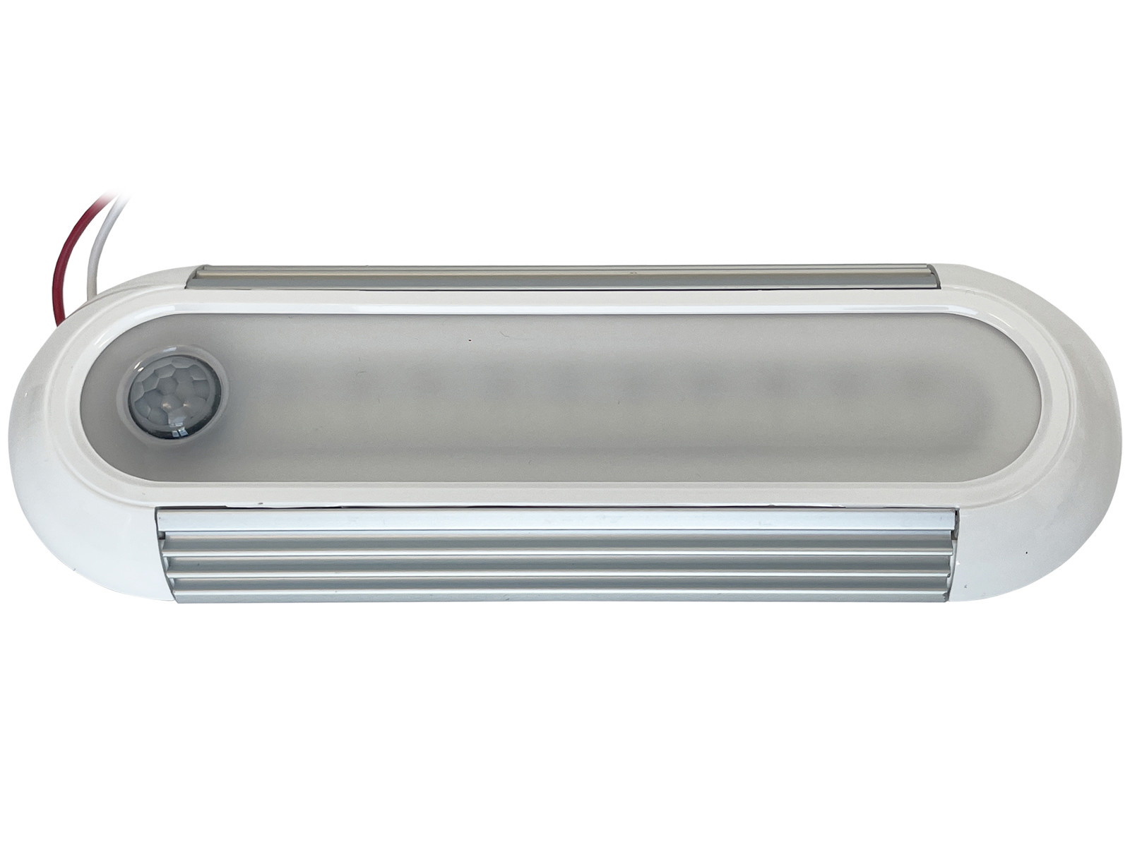 LED Interiør Lampe i flot og diskret design som giver et rigtig godt og kraftigt lys.Materet acryl cover så dioder ikke er synligLængde: 17 cmFarve: Hvid (4.000 kelvin)Spænding: 10-30V DCForbrug: 10WLumen: 1400Levetid: 40.000 timerTæthed: IP67PIR Sensor: 30 sec. fast intervalDimensioner: L:170 B:57 H:15 (mm.)