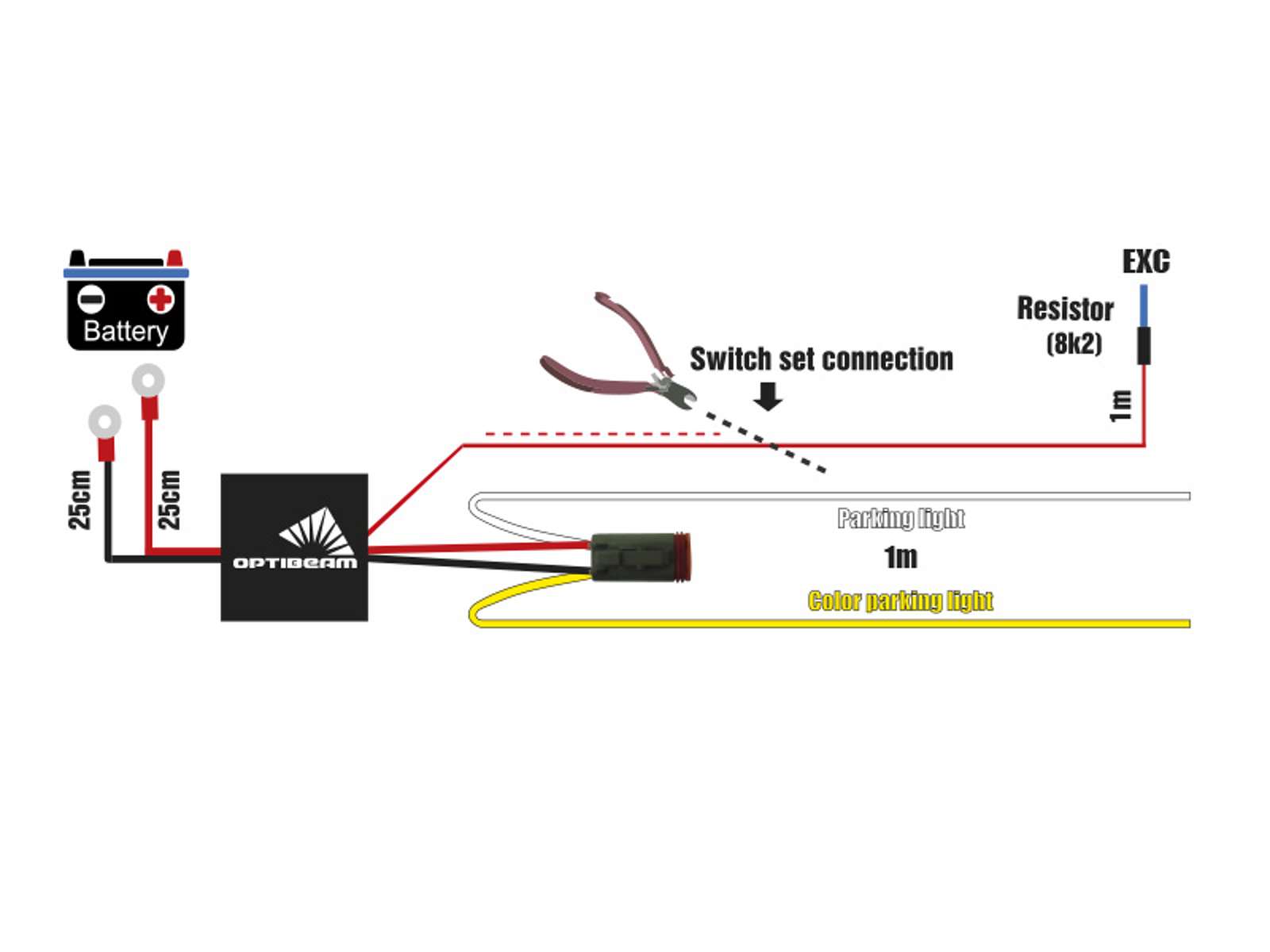 Plug & Play kabelkit til én ekstra fjernlyslampe m. parkeringslys, separate ledninger til parkeringslys, 200W (12V) - 400W (24V), korrosionsbeskyttet