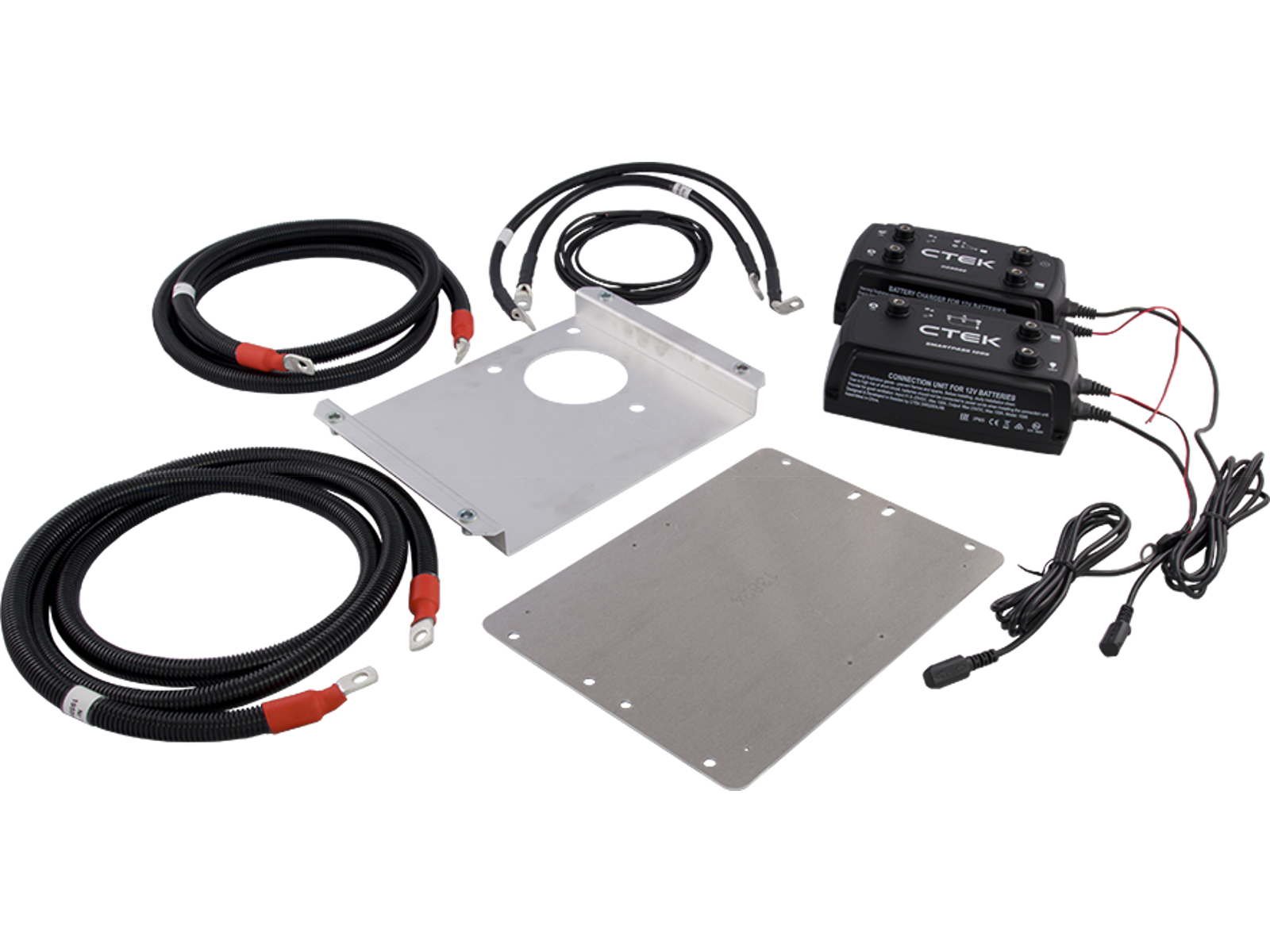 Komplet pakke til opladning af forbrugsbatteriet i VW Crafter og MAN TGE med Euro 6-motorer. Pakken inkluderer opladningsforstærker fra CTEK, som oplader forbrugsbatteriet, hvilket får bilens "smarte generator" til at starte opladningen.