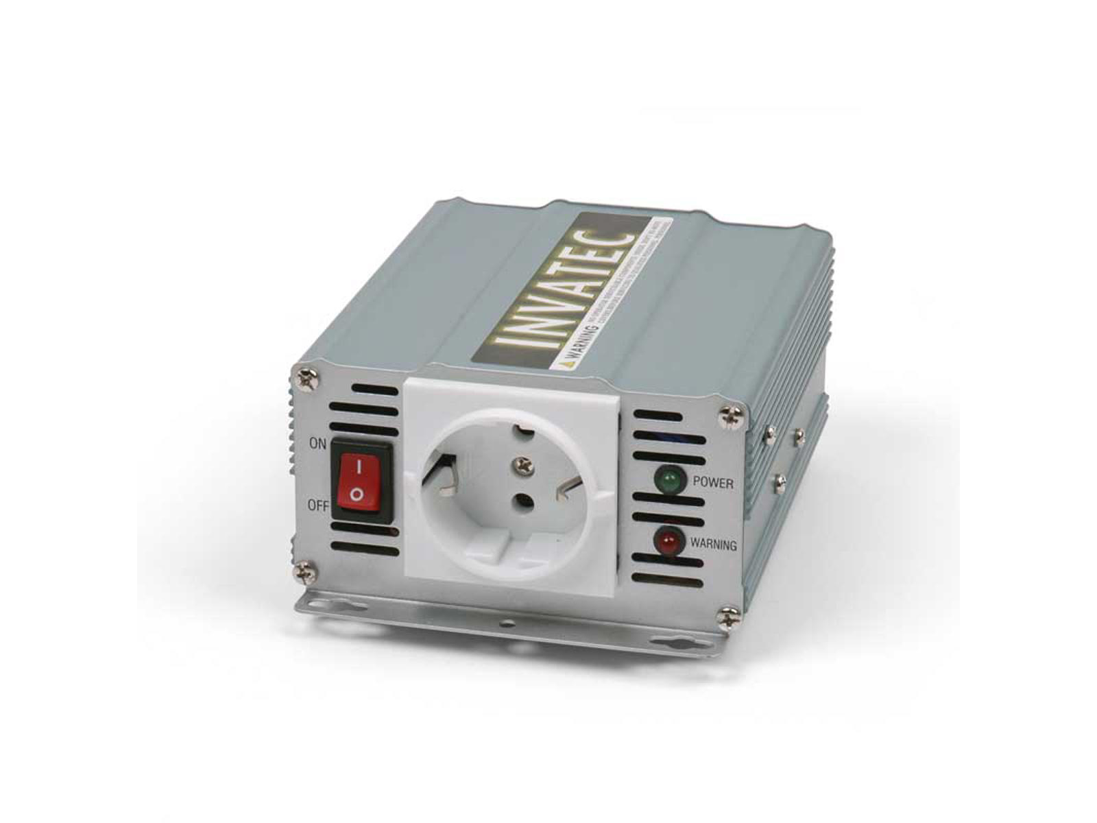 INVATEC invertere er produceret i Taiwan, under dansk kvalitetskontrol og design. Denne inverter giver en modificeret sinus kurve, tilnærmet sinuskurve, til det mindre krævende udstyr som ikke kræver helt ren sinuskurve. Se kurven øverst til venstre. INVATEC invertere er lavet efter switch-mode princippet, som de fleste invertere er i dag, hvor jævnstrømmen konverteres ved højfrekvens, udrettes igen og derefter laves til 50 Hz vekselstrøm. Derved sparer man en stor tung transformer og får et kompakt, let og billigt apparat. INVATEC leverer mange størrelser invertere. Lige fra de helt små 150 watt’s, som kan drive strømforsyningen til en bærbar computer eller Playstation og til de store 2500 watt’s, til eksempelvis kaffemaskine, mikrobølgeovn og meget mere. Modified invertere anbefales ikke til apparater med roterende motorer. Fjernbetjening kan fås som ekstra tilbehør til 1200/1800/2500 watt.