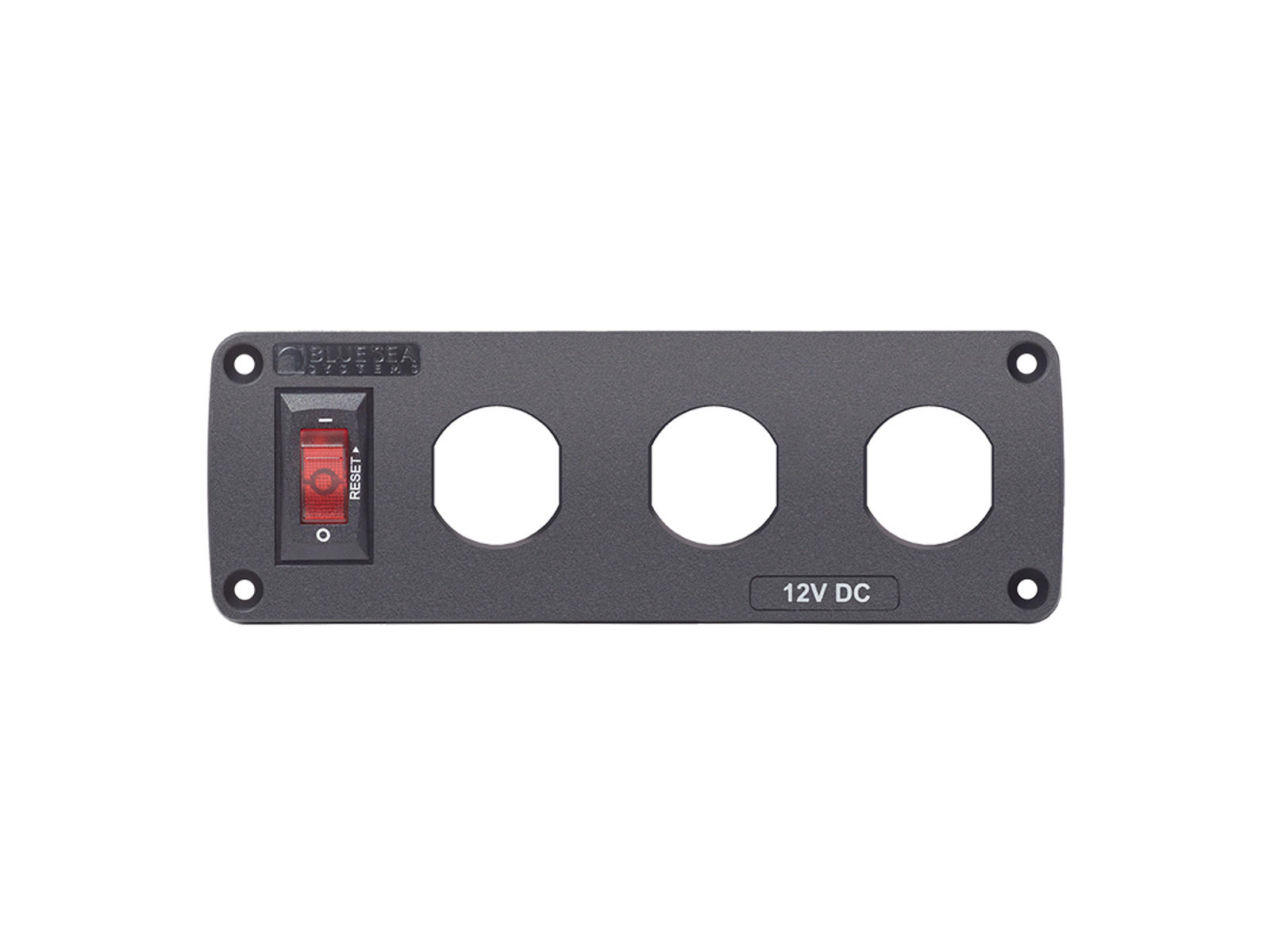 Kontaktpanel med automatsikringer (15A) og 3 tomme Ø29 pladser.