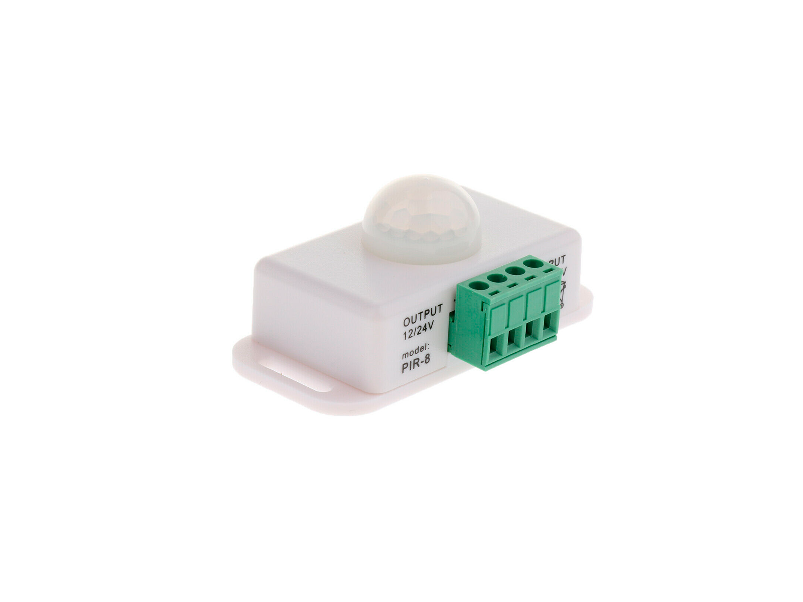 PIR-8 sensor, Hvid,12V/24V DC m/timer-just, 6A max, 8m radius