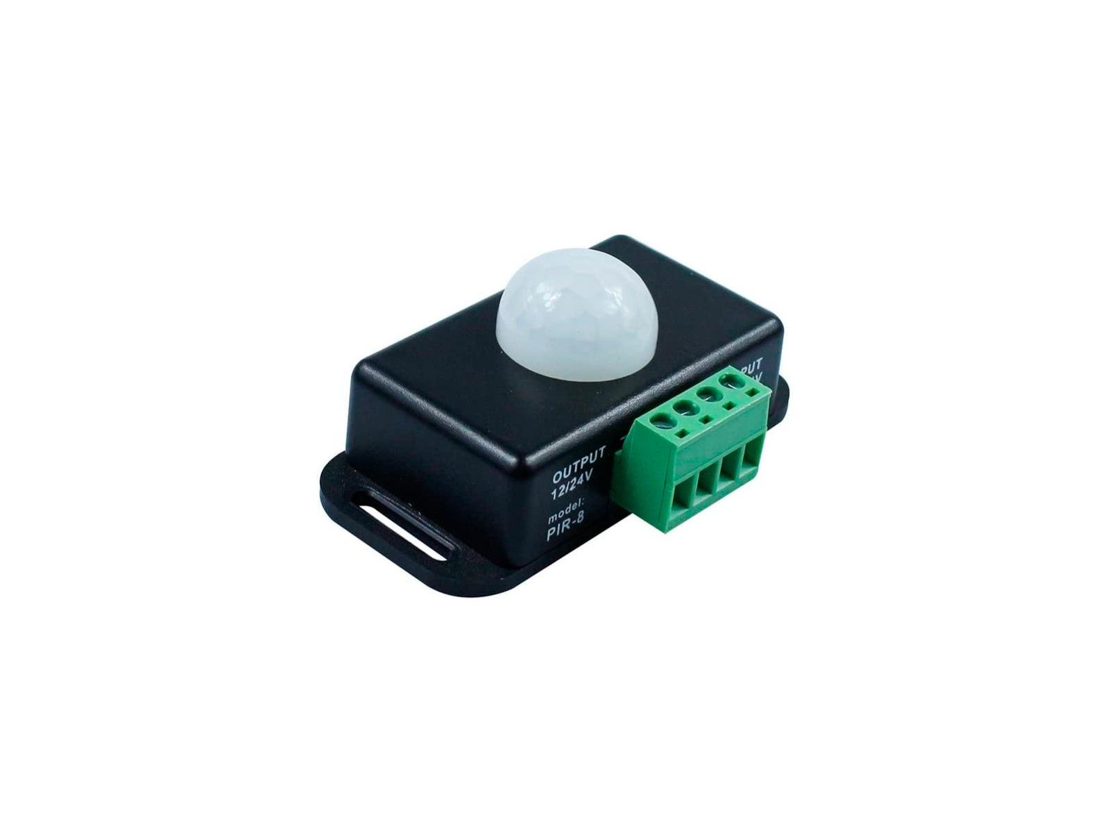 PIR-8 sensor, Sort,12V/24V DC m/timer-just, 6A max, 8m radius