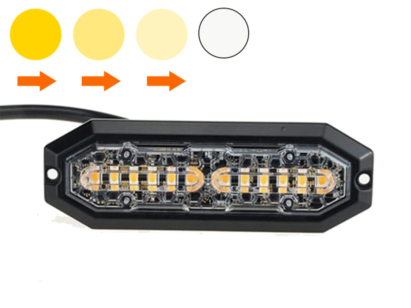De er desuden med klar Polycarbonat-linse, der giver optimal lysgennemstrømning, samtidig med at de har den største brudsikkerhed. Kabinetet er i aluminium, og de kan tilsluttes både 12V og 24V, og de kan synkroniseres, så flere Flash blink-lamper kan blinke sammen.
