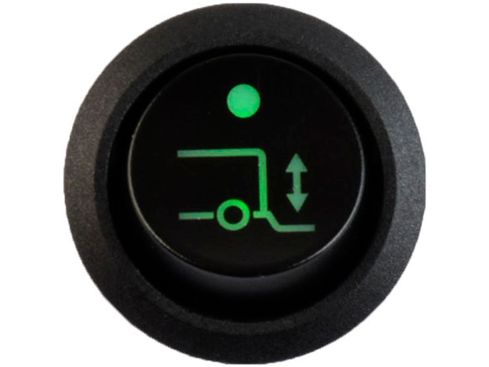 Rund mini afbryder til panelmontering med LIFT symbol og GRØNT indikeringslys