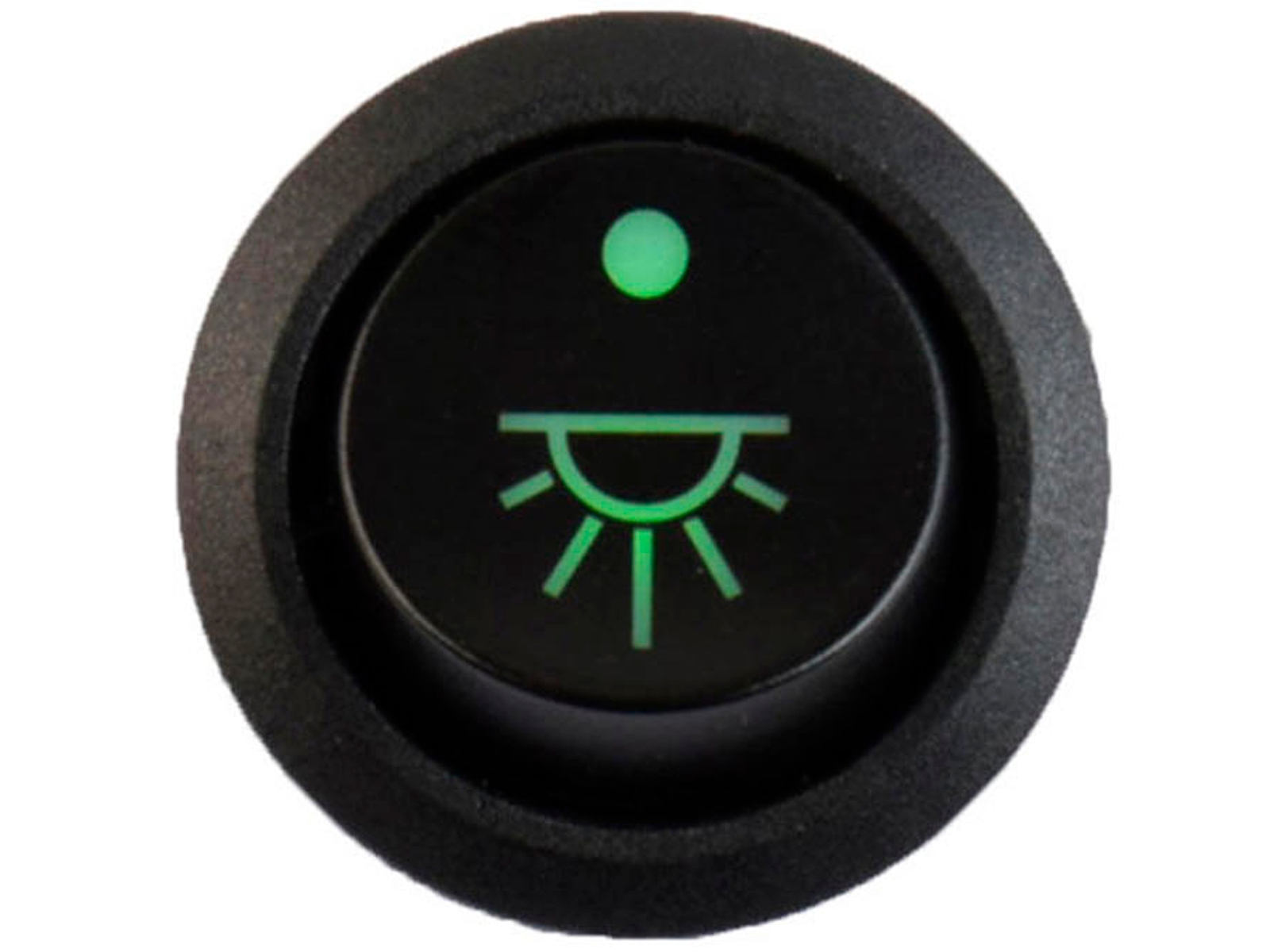 Rund mini afbryder til panelmontering med LOFTLYS symbol og GRØNT indikeringslys