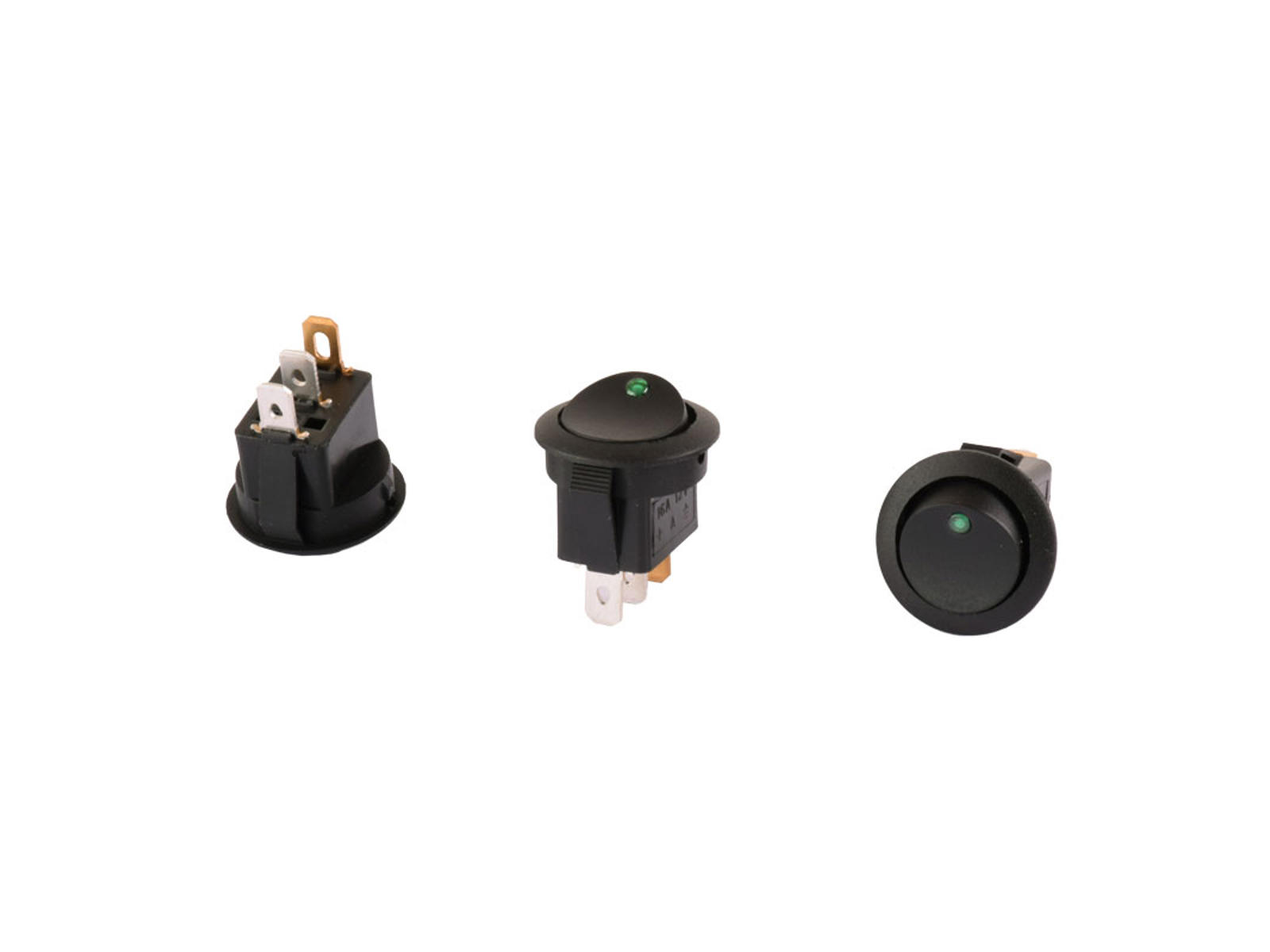 Rund mini afbryder til panelmontering med GRØNT indikeringslys.
