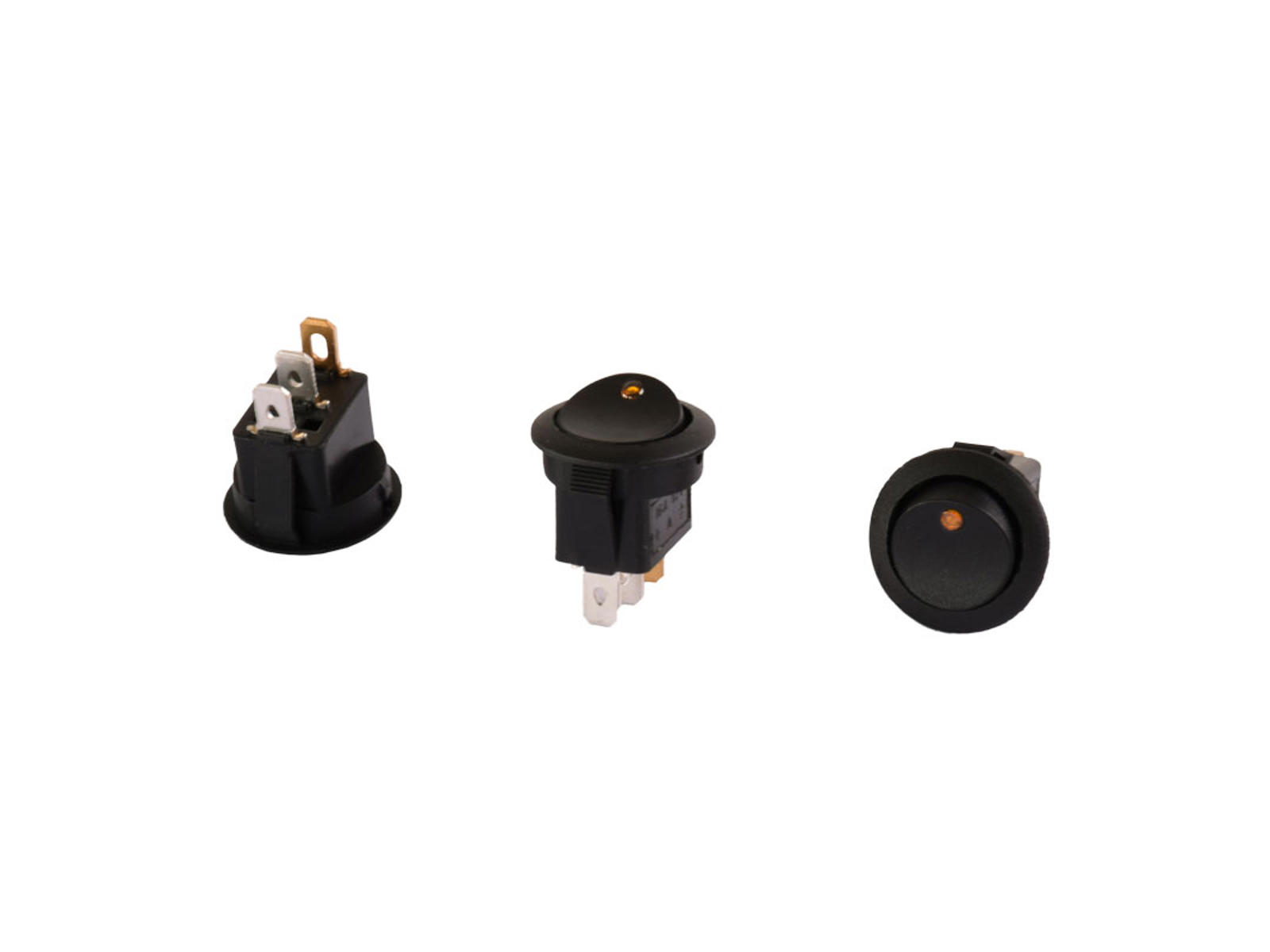 Rund mini afbryder til panelmontering med ORANGE indikeringslys.