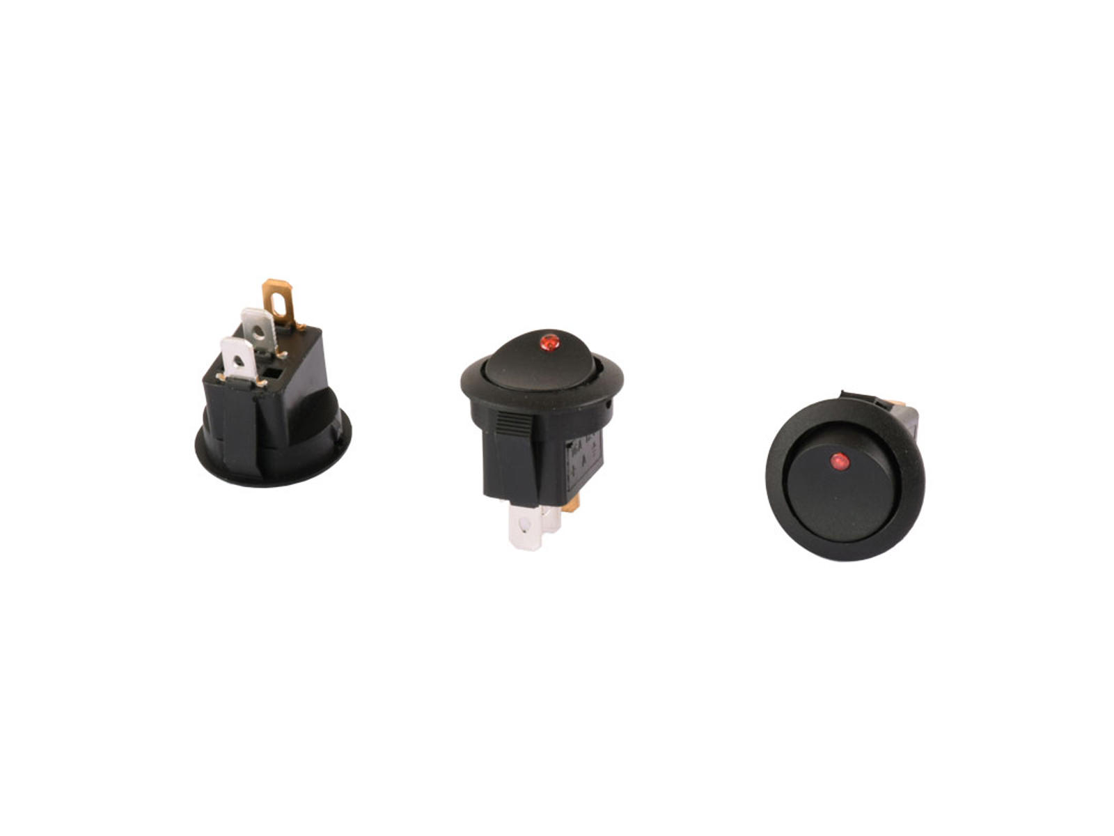 Rund mini afbryder til panelmontering med RØDT indikeringslys.