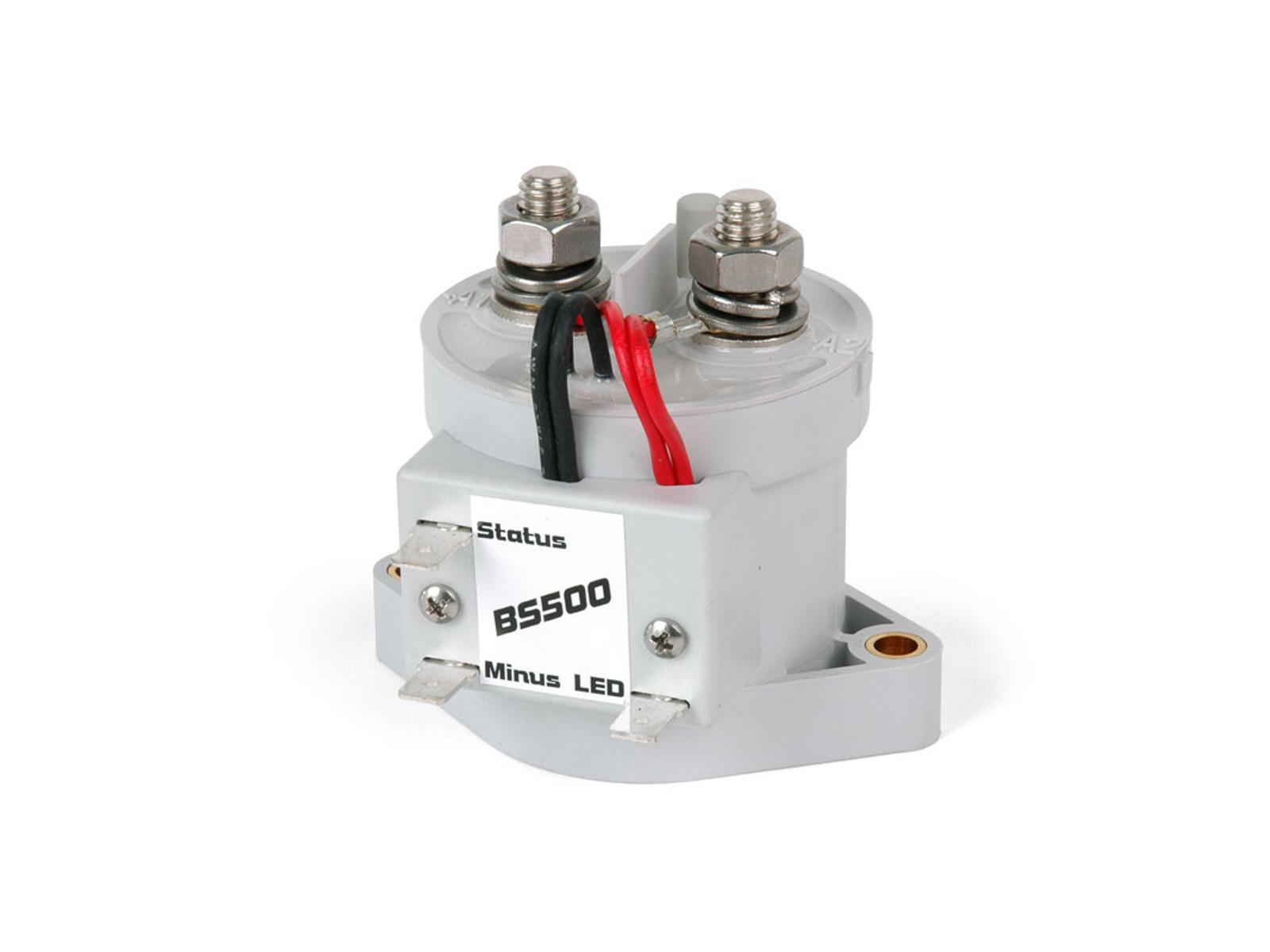 Det store BS250 (500A) relæ kan håndtere kortvarrige strømme på over 2000 ampere og kan derfor også slavestyres til sammenkobling af alle batterier, når man ønsker at bruge alle batterier til at starte på (nødstart). Terminaler M8. Forsyningsspænding 12-24 volt Kontinuerlig belastning 500 A. Kortvarig spidsbelastning 2000 A (250 ms.)