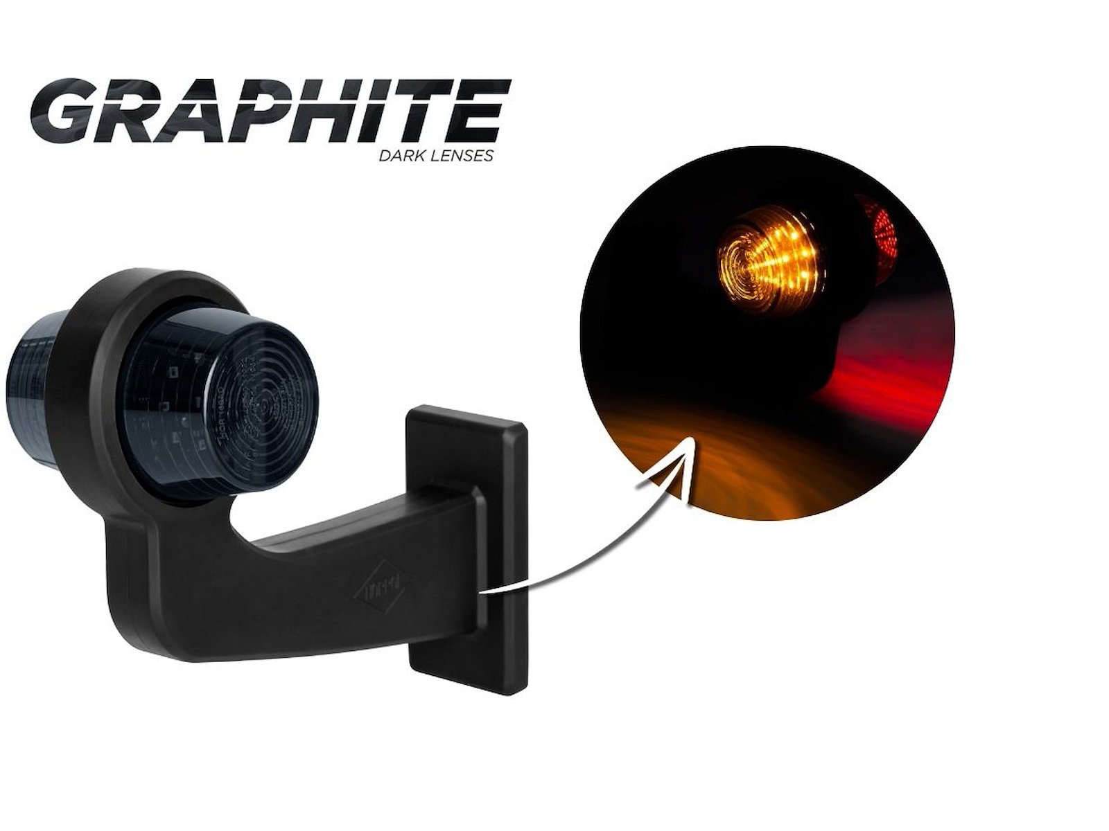 LD 2620/GRAPHITE er en orange og rød markeringslygte på en lang arm, designet til montering på venstre side af et køretøj. Velegnet til alt fra små trailere til lastbiler og sættevogne.
