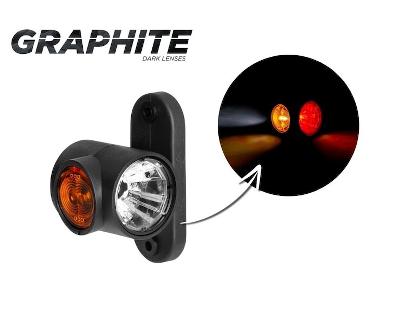 LD 2186/GRAPHITE er en trefarvet markeringslygte på en lige, kort arm, kompakt i størrelsen og med et bredt anvendelsesområde. Produktet er universelt med hensyn til montering og kan placeres både på venstre og højre side af køretøjet. Velegnet til alt fra små trailere til lastbiler og sættevogne.