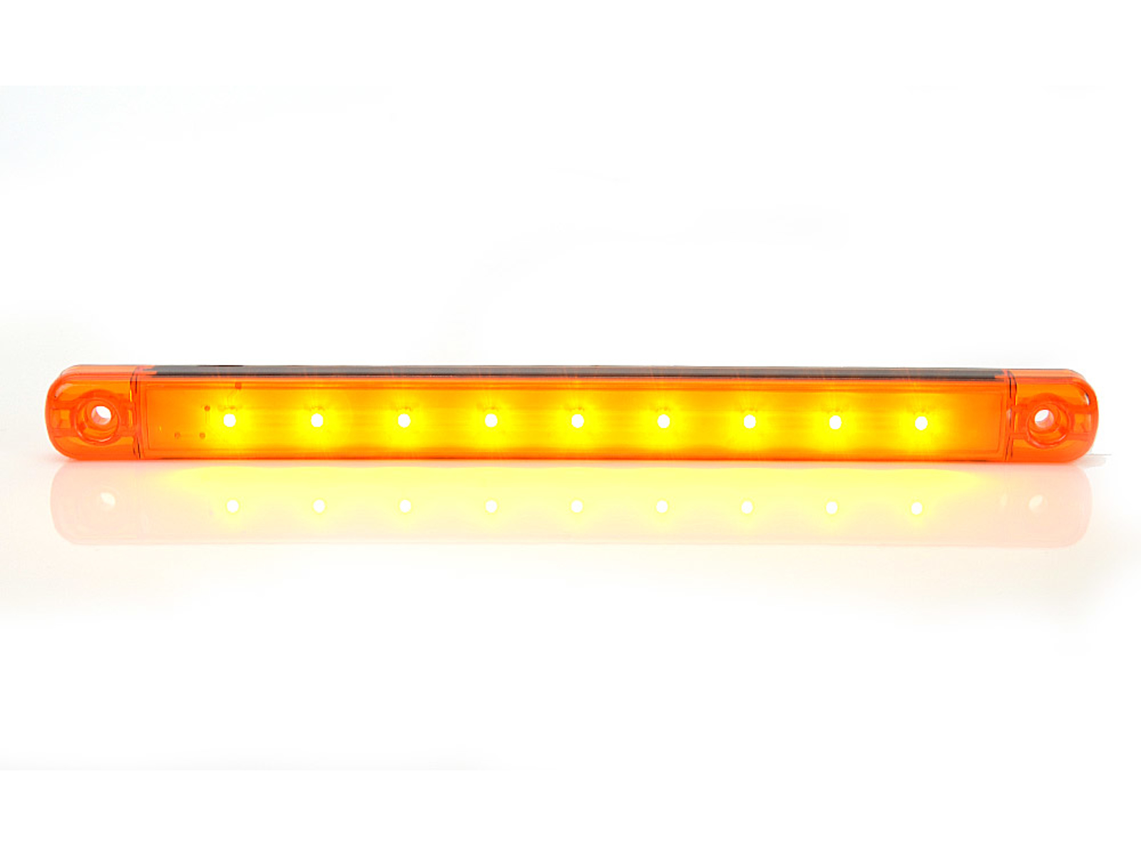 Slankt aflangt rødt LED-positionslys med 9 dioder og orange glas. Designet letter installationsprocessen og gør lampen meget brugervenlig.