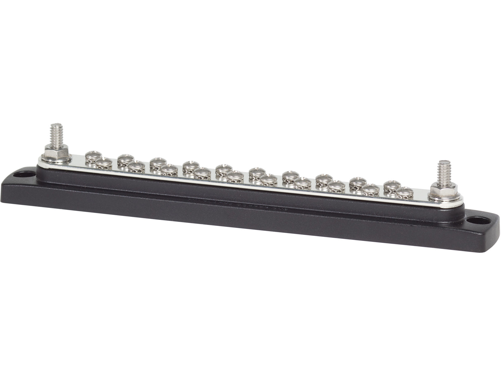 Common 150A BusBar er en brancheførende standard busbar, der sikrer effektiv fordeling af strøm og indsamling af negative eller AC-jordforbindelser. Med 20 skrueterminaler og 2 studs giver denne busbar fleksibel og sikker kabelforbindelse, ideel til marine, bil- og industrielle installationer.