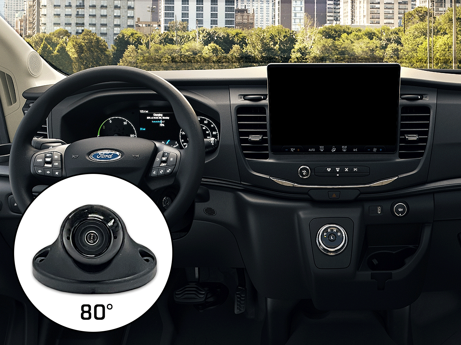 Kameraet monteres skjult ved diskret ved sidespejl. Det har optimeret 80° vidvinkel (diagonalt) og har god sigtbarhed selv i mørke (0,5 lux) .