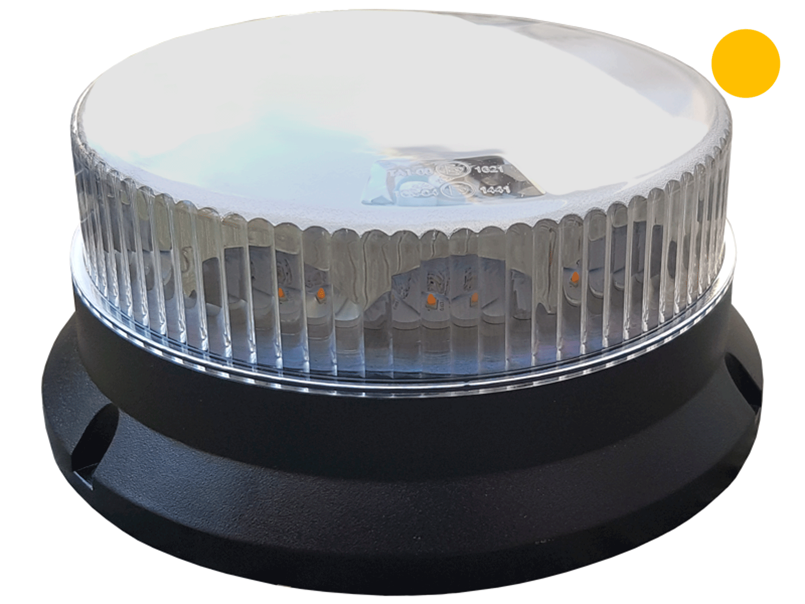 LED beacon, klar acryl med orange flash. 10-30V