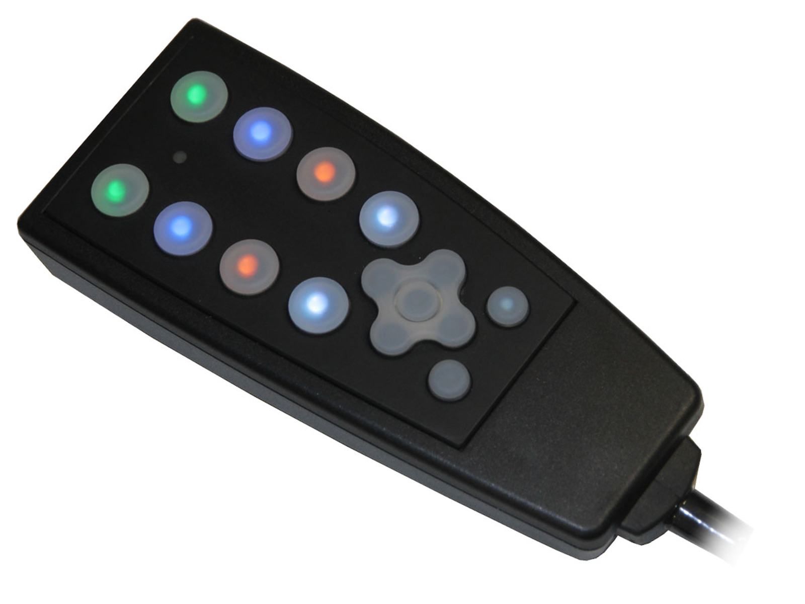 - Alle knapper er baggrundsbelyst med RGB LED'er som kan tilpasses efter behag