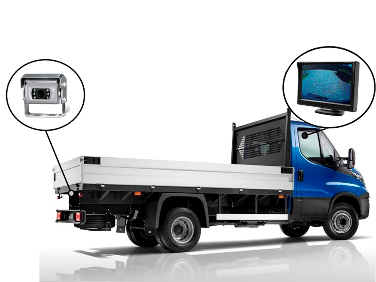 5" digital LCD højkvalitets monitor i super smal og diskret design. Derudover har den 2-kanals input, som gør det muligt at tilslutte flere kameraer,velegnet monitor til højresvingkamera Farvemonitor 16:9 med indgang for op til 2 kameraer. Nem plug'n play montering, PAL/NTSC (auto), mirror/normal, billede kan vendes vertikalt/horisontalt. DC 12/24V.